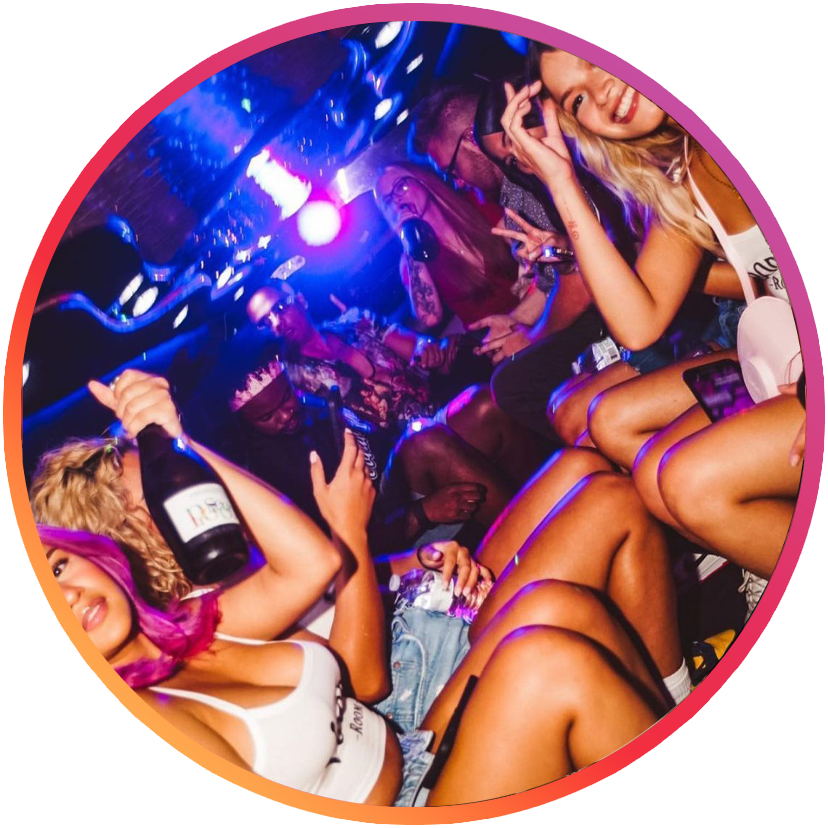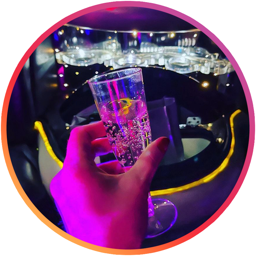 All our vehicles are Cadillac Escalades Stretch limos with multiple bars for drinks and leather seats with party/laser or executive lights as well as Bluetooth for music control, see the latest pictures on Instagram @westcampuslimos.